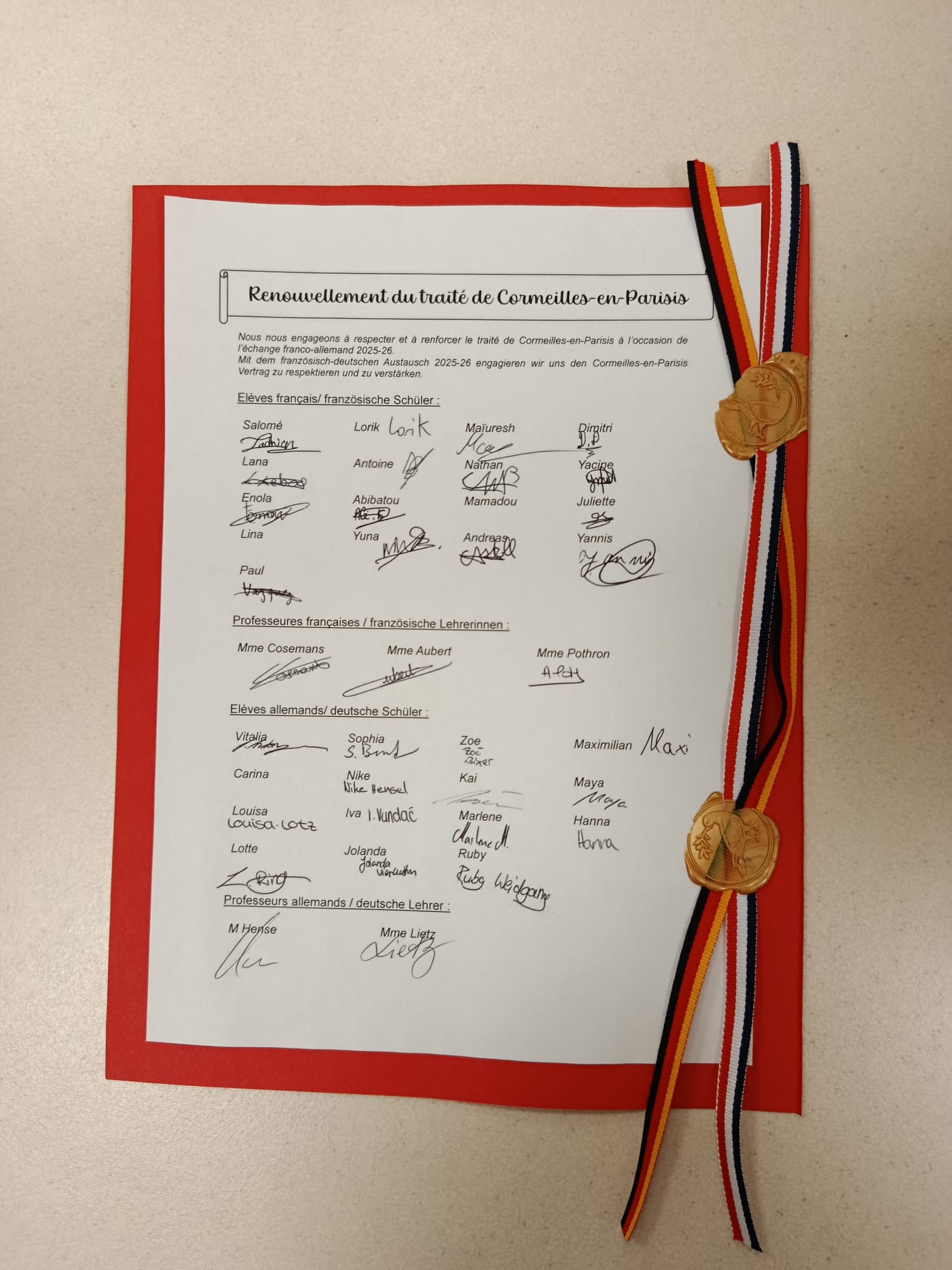Avant de se dire au revoir, les Français et les Allemands ont tenu à sceller leur amitié en renouvelant le traité de Cormeilles-en-Parisis.